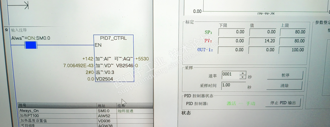 我用的SMART AR04模块 接的PT100探头,进行温控 。温度设定值为什么是科学计数?右边 PID控制面板 设定值没有 实时值倒是有了 是怎么回事?