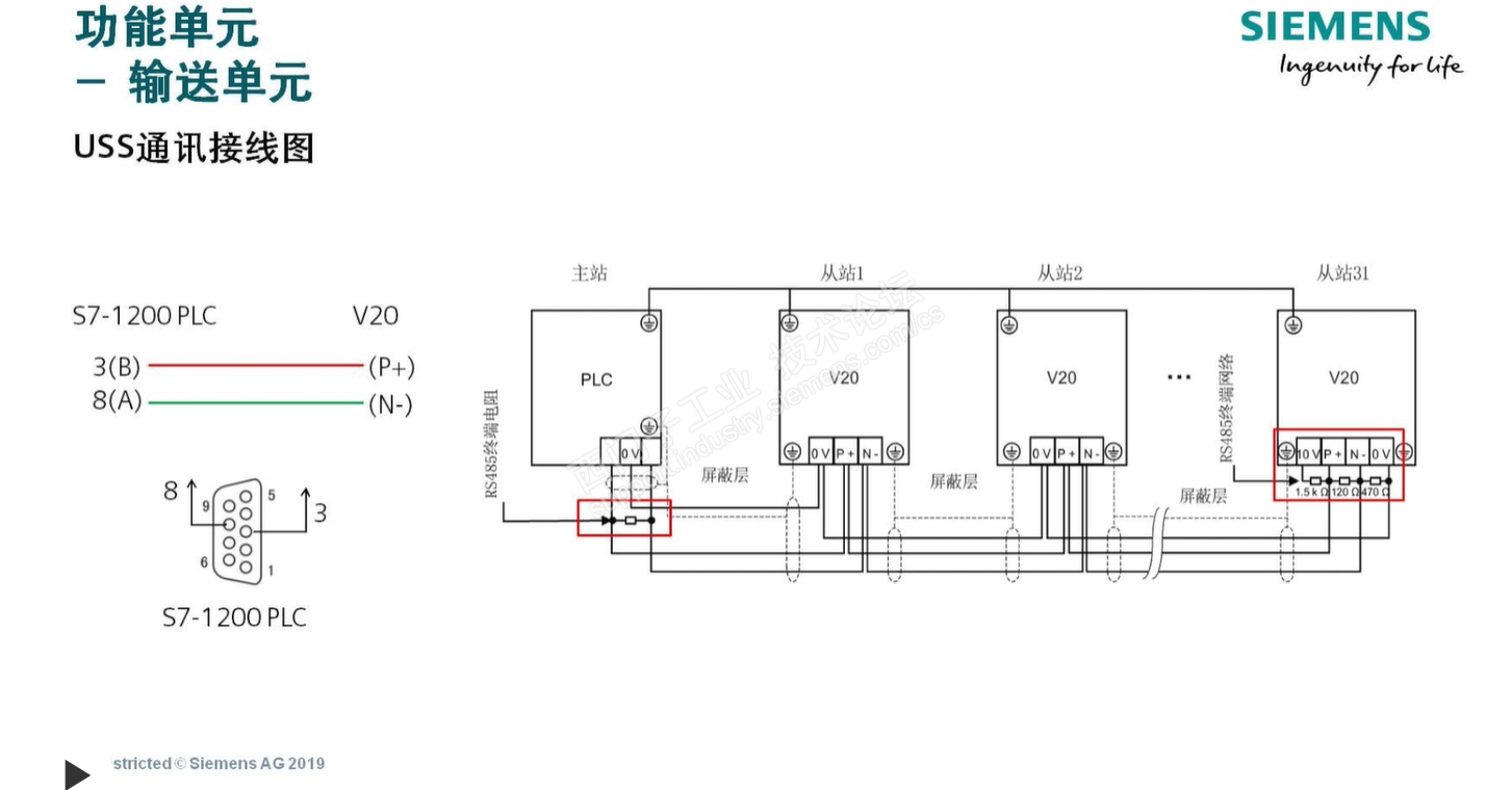如果使用ET200SP上的CM PtP模块与V20变频器做USS通信,接线方面还用连接终端电阻吗?