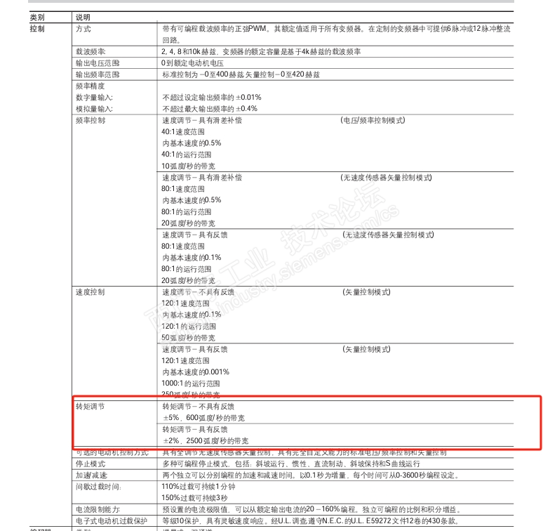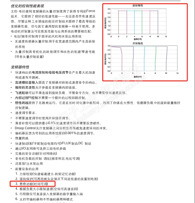 某第三方变频器的性能数据资料