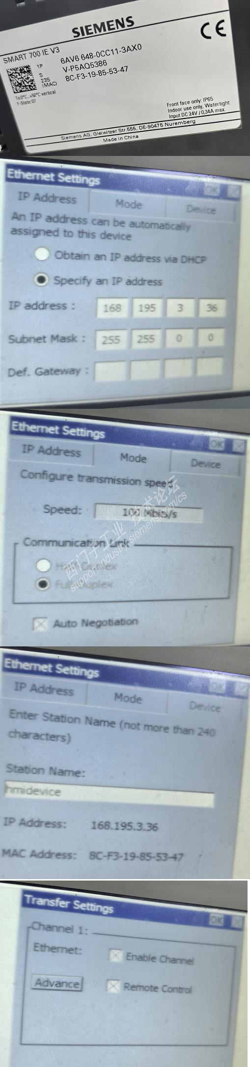 硬件:SMART 700IE V3触摸屏 (铭牌见附图)