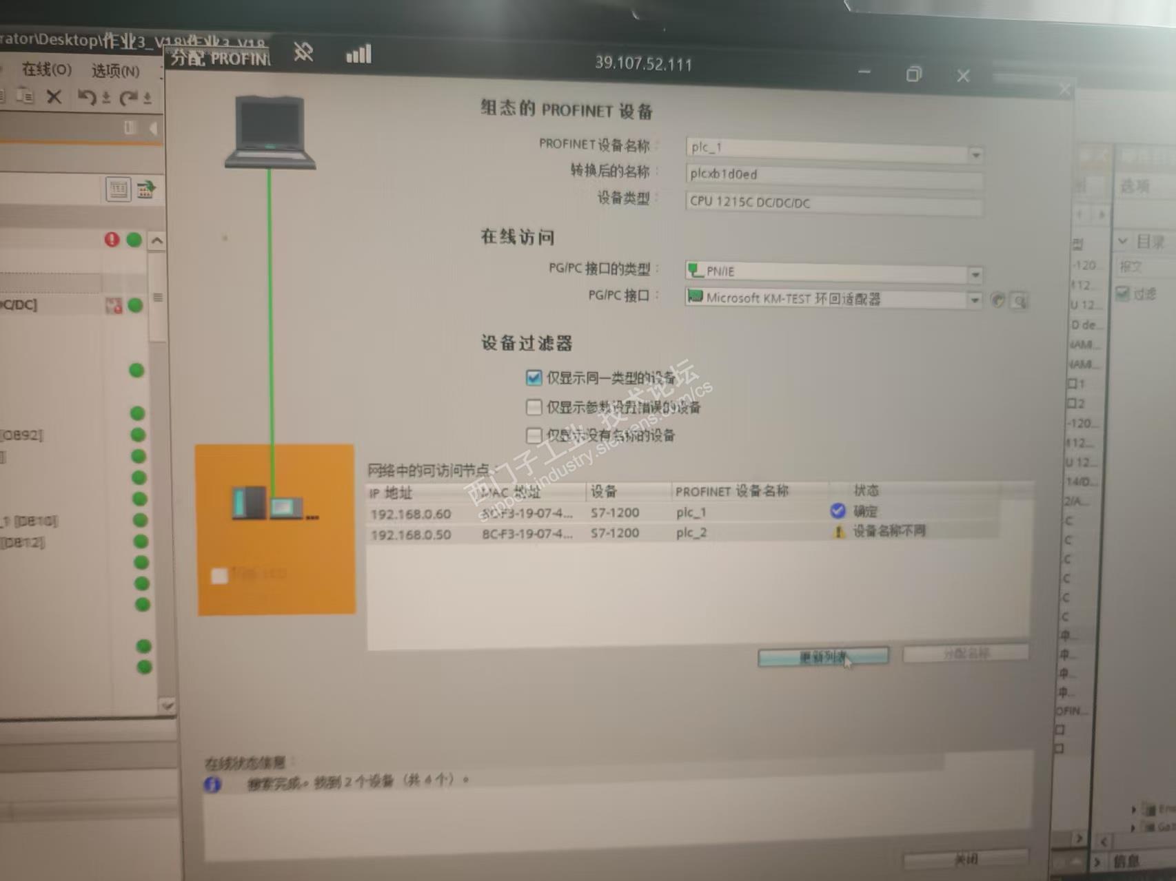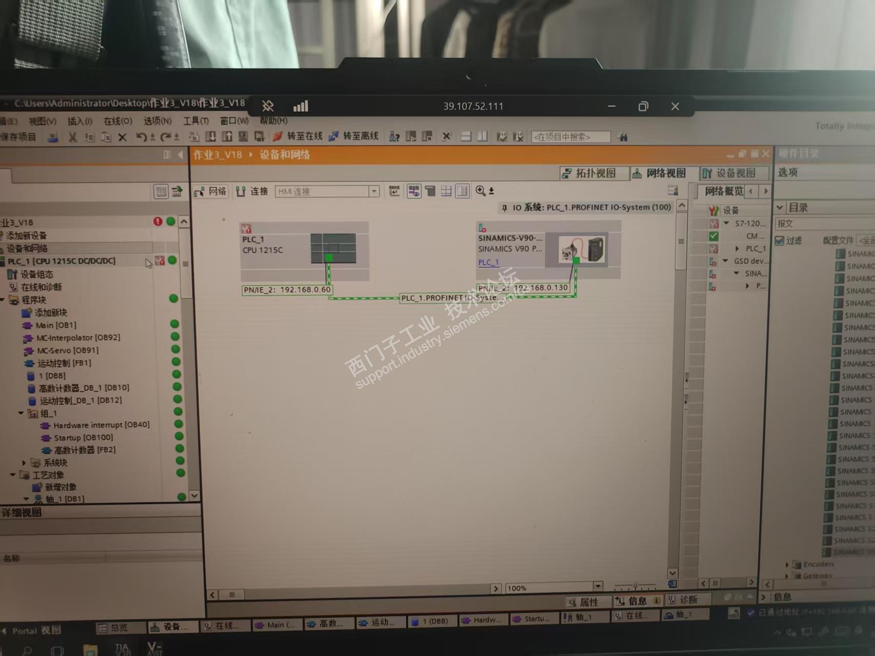 PLC和V90的名称IP地址都是对的上,状态都是确实,但是下载PLC后进入监视模式V90就一直报错,V90添加报文3了,进入调试软件,选的速度控制报文为报文3然后控制电机正反转都没问题