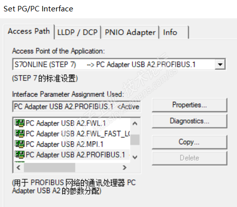 如果你是把PC ADAPTER 接到PROFIBUS DP 总线上,而不是直接插在DCM上,ACCESS POINT OF THE APPLICATION,要选S7-ONLINE模式,不能选DEVICE模式