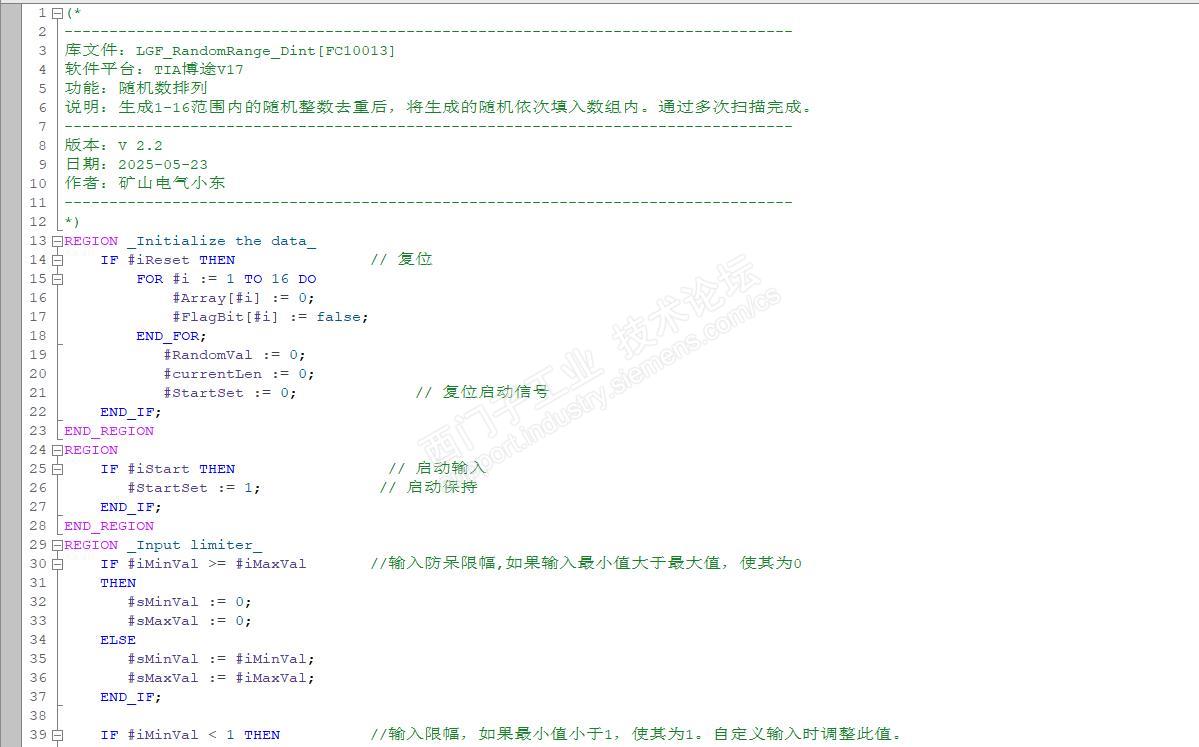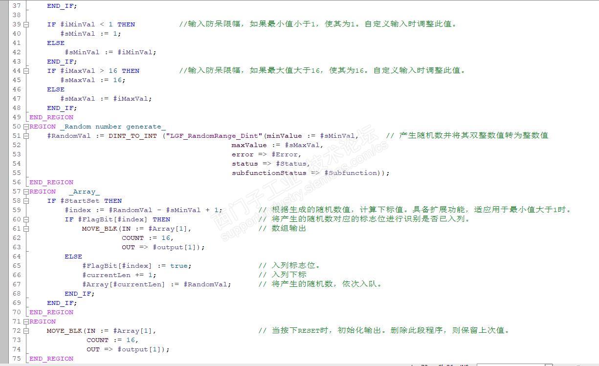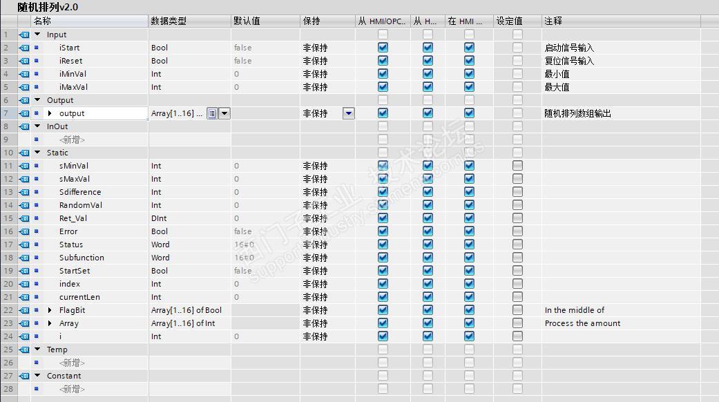 该程序通过启动引脚触发,根据随机生成1-16间的整数,进行去重后依次填入数组内。程序使用的是西门子S7-1200 PLC测试,TIA Portal STEP7 V17进行编程。