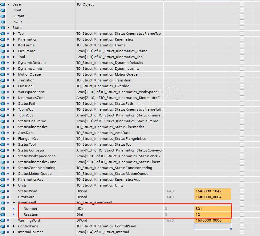 单个轴所有指令动作无问题,只有工艺对象中的运动机构报错,且无法复位