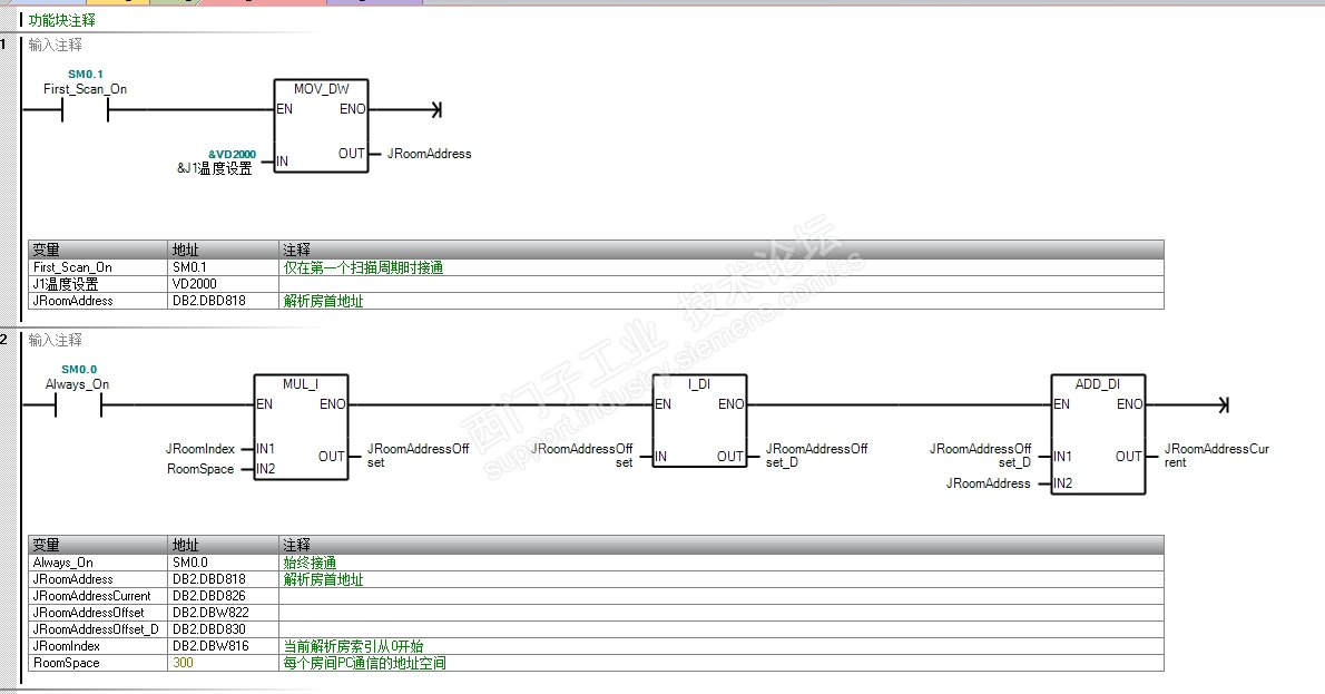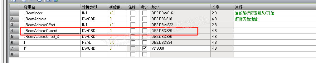 编译后,所有未绑定到地址的全局变量和 FB 实例的地址均在 DB2 区域中分配。