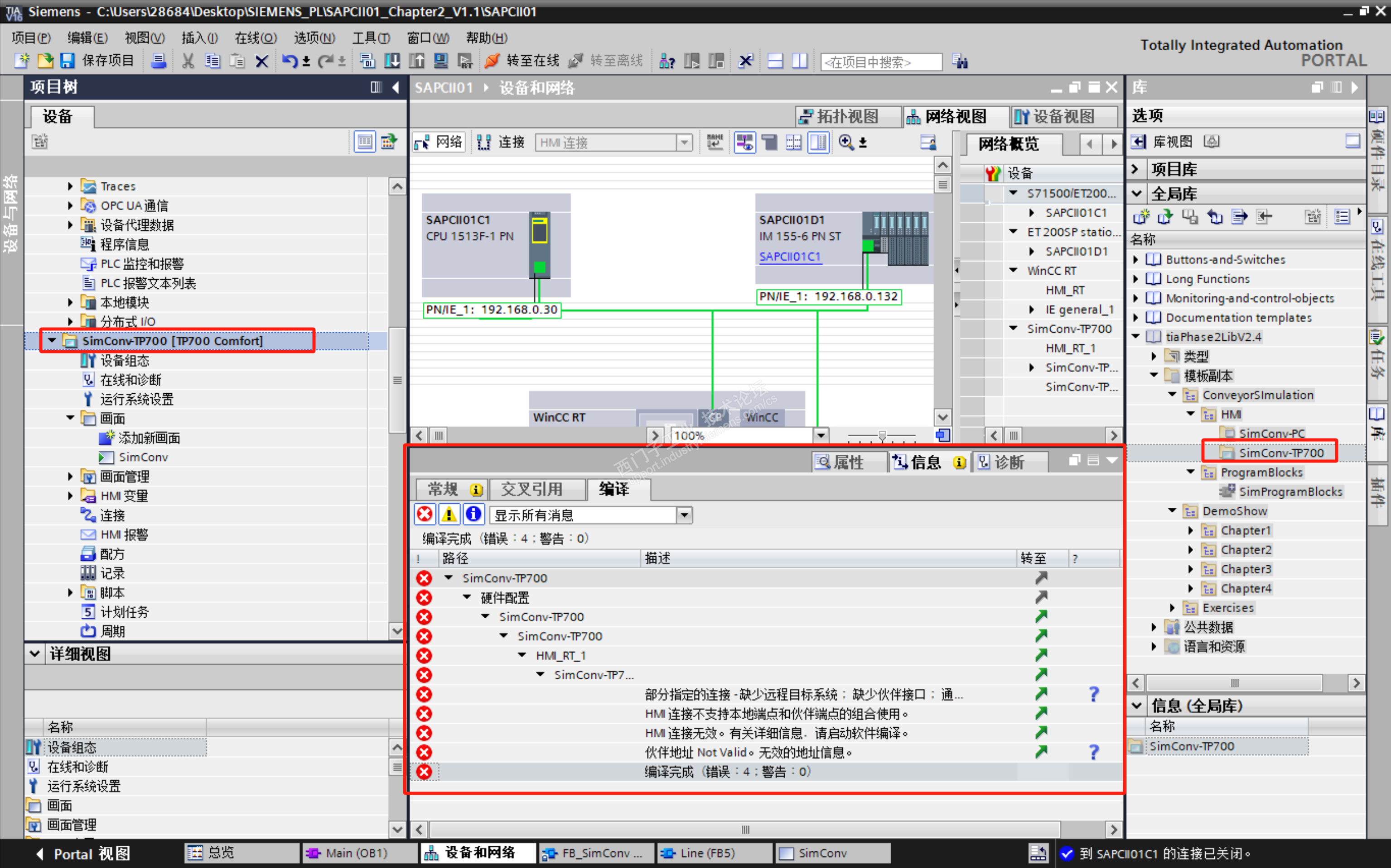 首先课程中的库就没找到明确的文件,经群友提醒后在“SAPCII01_Chapter2_V1.1”这个压缩包中找到可能文件,但删除原本的WinCC RT,拖入触摸屏后编译总是报错