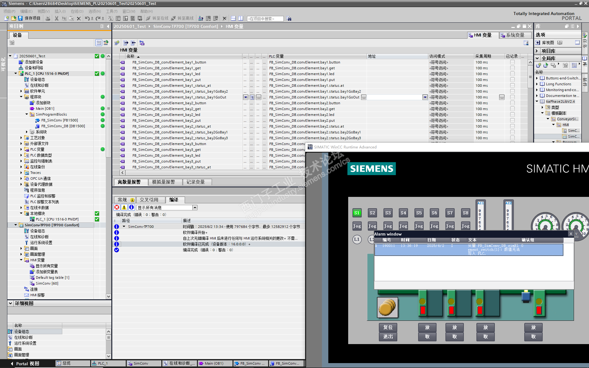 @俞清洲 PLC、HMI的编译都成功,PLC程序在PLCSIM AdvancedV4.0中在线运行,但触摸屏仿真出来后无法交互,报错就是无法写入PLC。我检查了数据块的写入,也重新关联变量,但没能解决,请版主费心指点一下