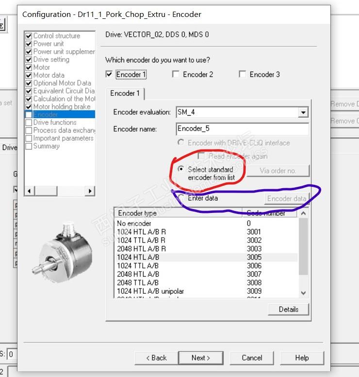 1、矢量控制,快速调试中编码器从列表选择跟输入编码器数据,这两种操作对电机优化有什么影响?(参数与编码器铭牌输入一致的情况下),如下图:
