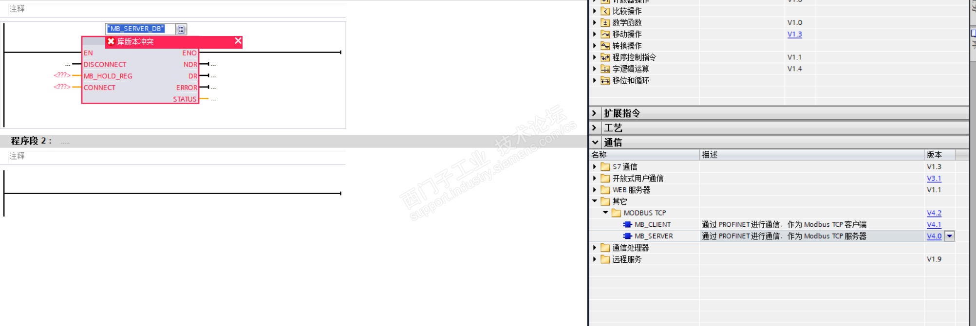 3.上传出来的程序保存到桌面,里面的modbus_server版本是V4.0以上的拖出来就报红
