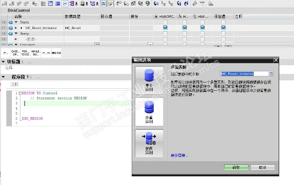 2、载FB块当中 使用SCL语言拖拽MC-Power,及其他轴工艺功能块时 应该选择哪种DB块格式 多重实例跟参数实例有什么区别吗?
