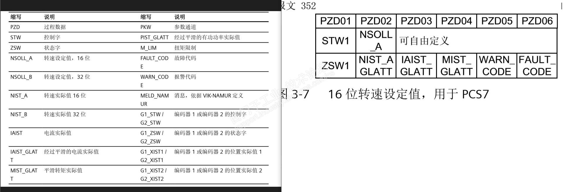 352报文是西门子标准格式的报文,控制报文只用了前两个字,空闲4字,你可以自己设定参数(如果有其他需求),状态字是完全占用的