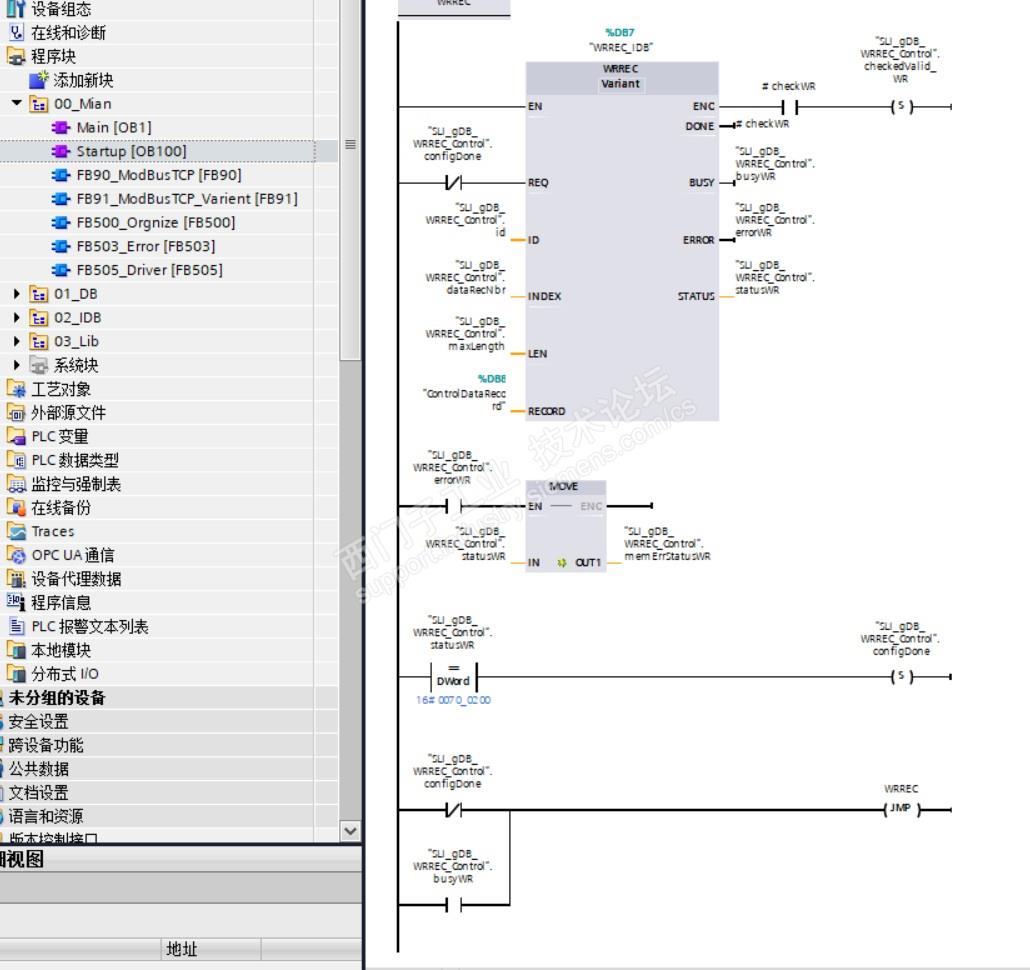 在1200plc中配置下挂PN从站,一个程序兼容两种设备。其中一个设备plc下挂了1个pn从站,另一个设备下挂了2个pn从站,如何用一个程序下载后,plc不诊断报错。看了手册需要激活组态控制,OB里调用WRREC指令,但是PLC一启动就Stop了。
