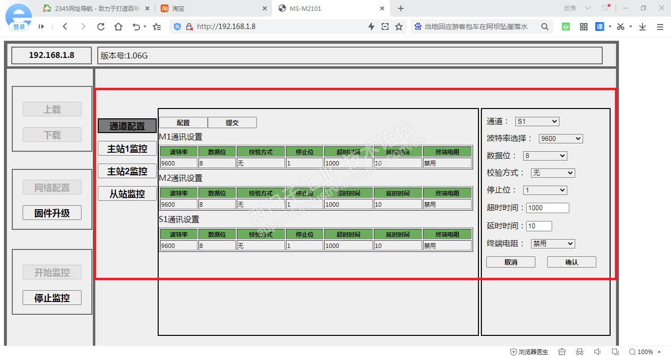 通过功分器调试窗口,S1、M1/M2各通道的Modbus rtu通讯参数均可以独立设置,这样对于每个通道,无需均统一配置,而可以根据实际的需要自由调整,这样对通讯参数的一致性要求,就可以通过该功分器做到与通讯口的匹配。