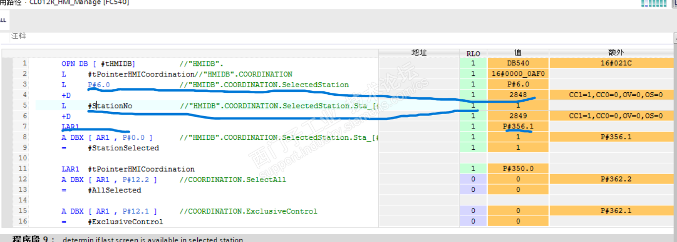 A DBX [ AR1 , P#0.0 ] //"HMIDB".COORDINATION.SelectedStation.Sta_[#StationNo]
