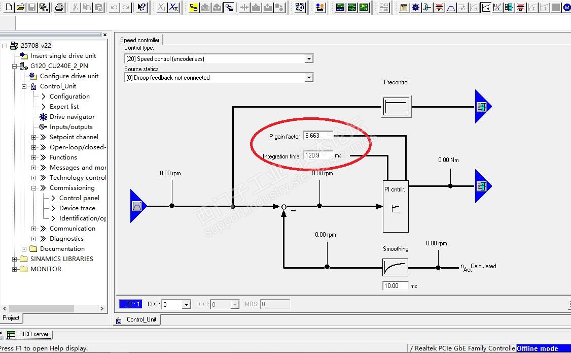 于是,正好有一个交流异步电机需要用G120驱动。于是特意通过调试,看看视频讲座说的是否确实?