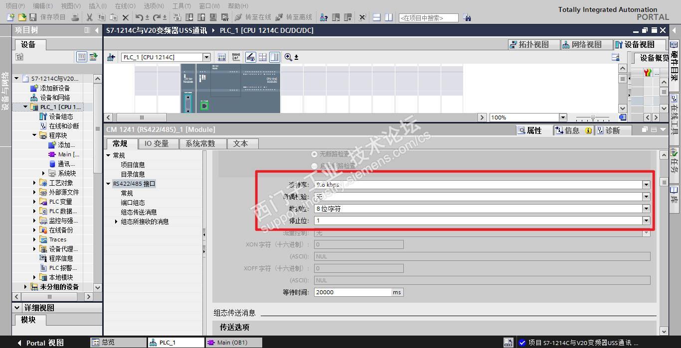 对于plc侧没有可以调整校验这个参数管脚,也就是说无需关注s7-1200的校验问题,而相对于V20变频器侧,在与s7-1200实现USS通讯,则要求P2034 = 2,需要调整为偶校验,通讯才可以实现。也是我写这个帖子的理由,让大家在遇到类似问题时,做一个参考。