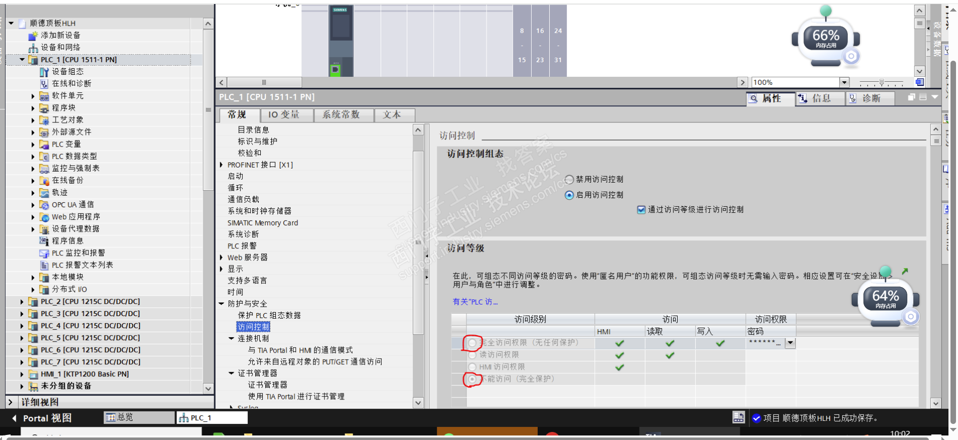 请问博途V20PLC属性这里完全访问权限选择不了,不能访问这个实心点去不掉为什么?