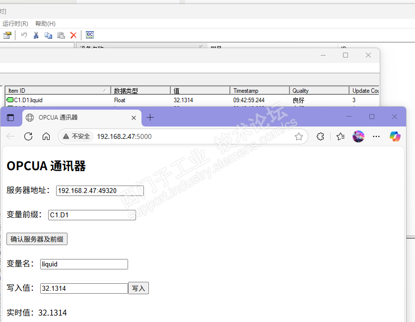 上次分享了与kepserver ex6通讯的exe文件,这次分享一个网页端访问的项目,需要在后端运行app.py,局域网内所有设备包括手机均可通过网页读写kepserver EX6的数据,下面是使用截图: