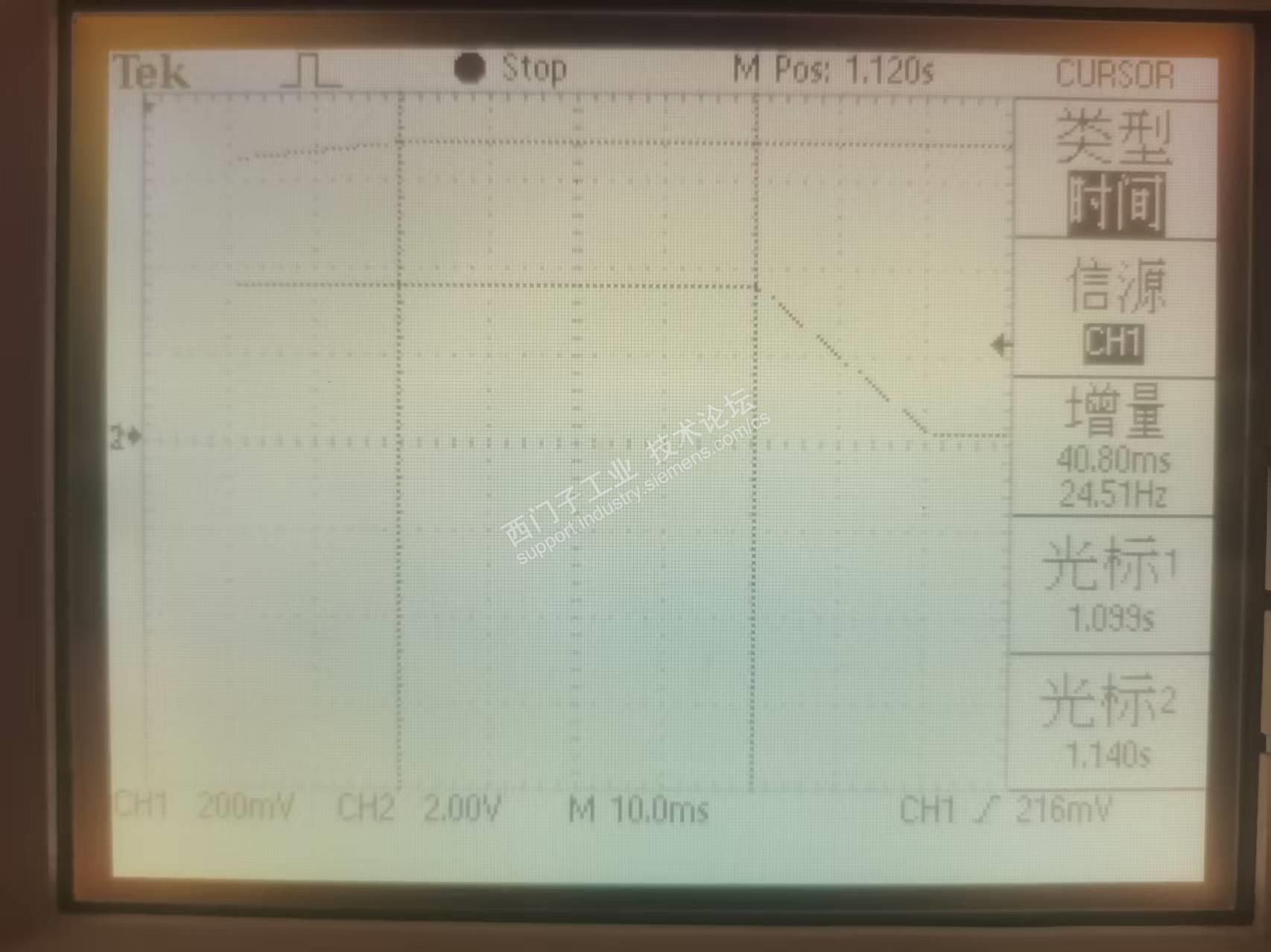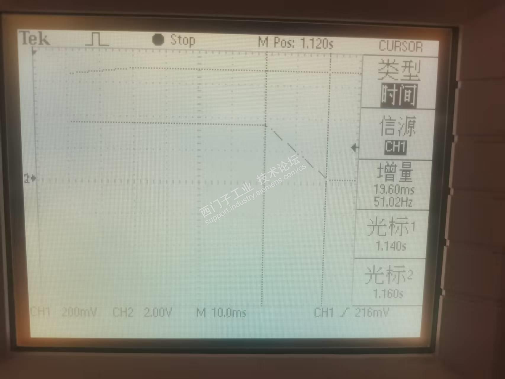 总结:如果使用斜坡函数发生器给定模拟量,在使用过流保护时,应首先使用客户自身驱动器的过流保护功能,LOGO!的保护可以作为辅助。因该客户驱动的频率是10K,所以事先与客户作了说明,本次测试,只是想掌握实际的数据,以便在以后的应用中做一个参考。