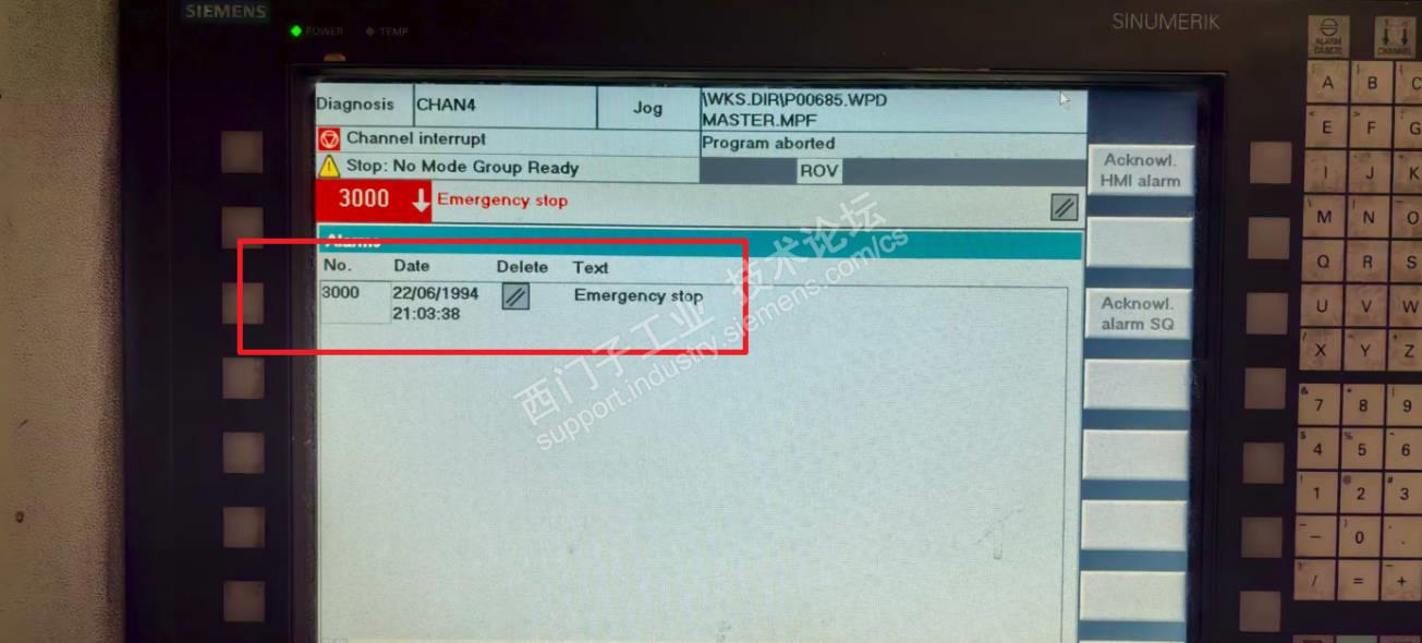 一次西门子840D系统急停按钮盒的更换