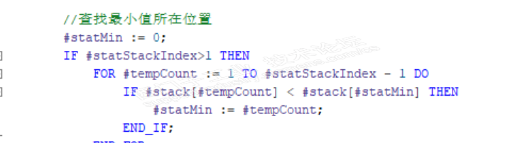 并不是只和(statMin:=0)比较,而是首先假设第一个元素为最小值,后续元素依次跟最小值比较,在整个比较过程中,如果有比最小值还小的元素,则最小值会被替换成这个元素,因此这个被比较的最小值是动态更新的,而并不是固定的(statMin:=0)