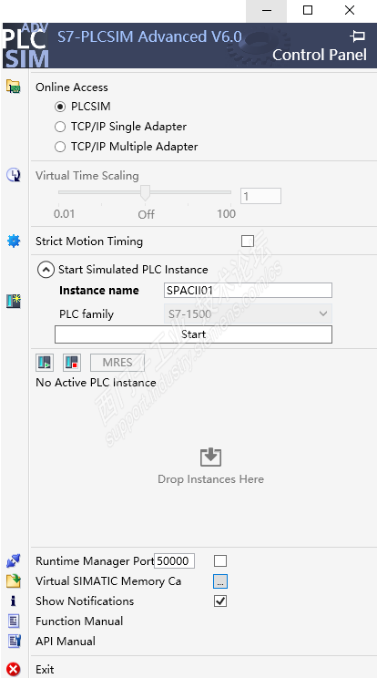 教程中的模拟使用的是S7-PLCSIM Advanced V3.0 有个PLCSM Virtual Eth Adapter的虚拟仿真选项 而我使用的是S7-PLCSIM Advanced V6.0 并无该选项