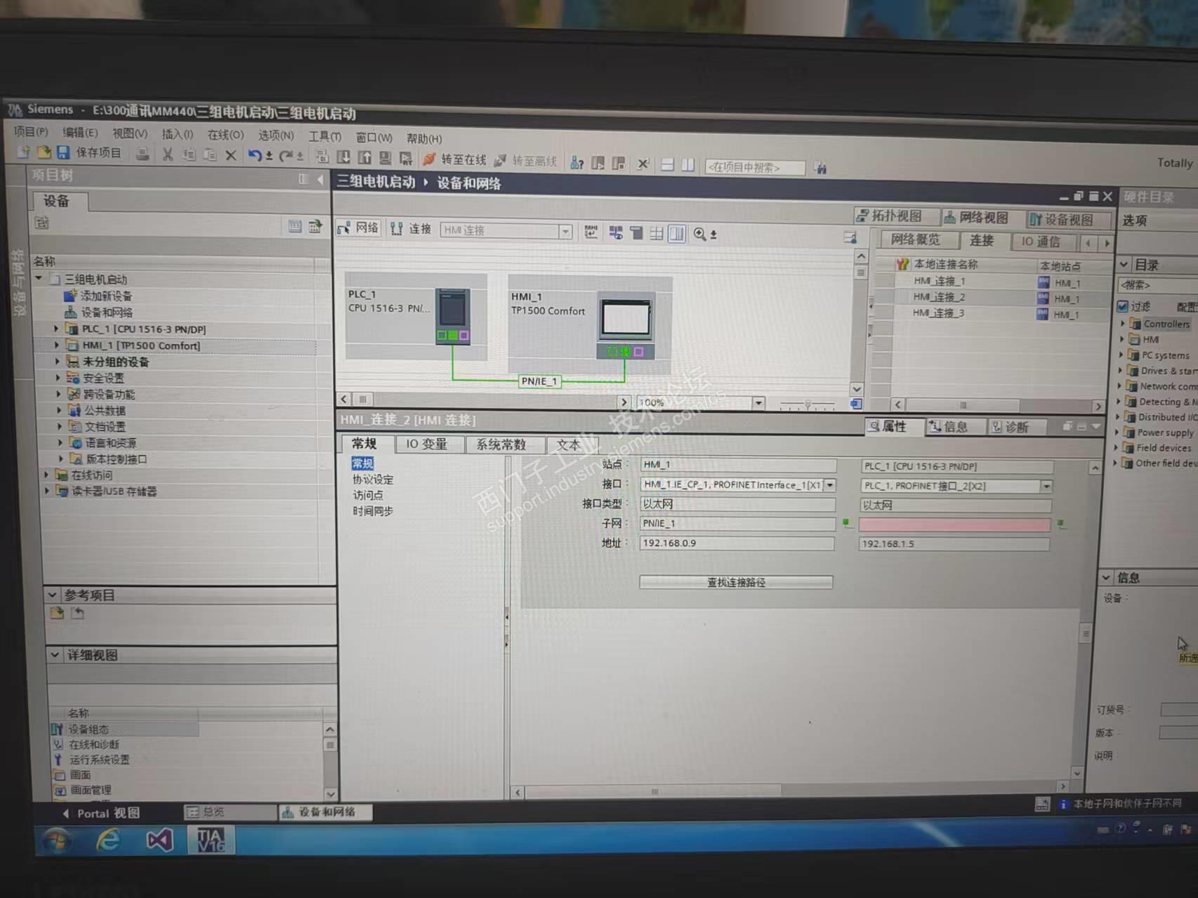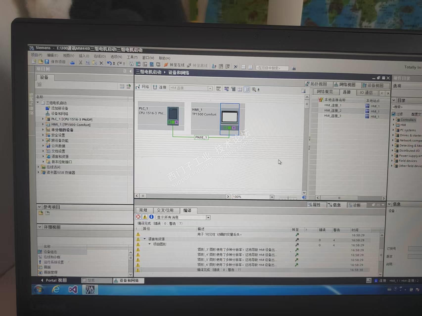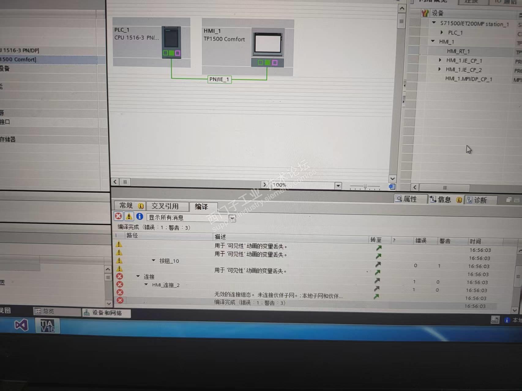 自己在做个程序和HMI仿真通讯,编译错误显示无可连接设备。编译HMI提示HMI1、2、3无可连接。重新写了地址无数次。证明都不行。后来发现在网络试图里连接可以看到连接乱了。点HMI连接属性,点击查找连接路劲,连接配对。变正常了。