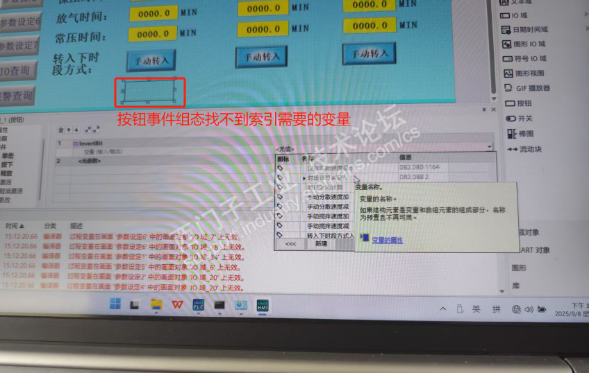 smart line v5导入变量(ST60)变量后会出现乱码,修改了语言设置为简体中文且为宋体样式,也修改成其他字体,还是存在。另外UDT中的元素在按钮事件组态中无法索引到,但是在按钮动画属性组态又可以索引组态到,不知道什么原因。