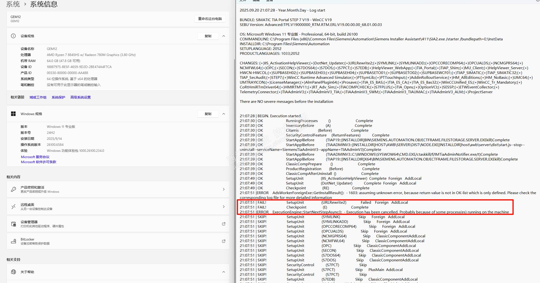 这时候问题就来了,加载镜像-管理员权限安装-勾选等等都正常,但是启动安装进程没几秒钟就报错停止了。