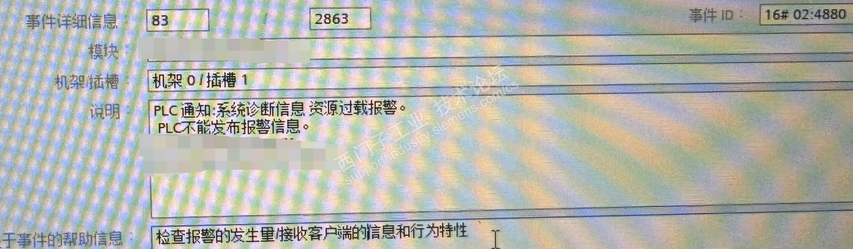 诊断里显示“PLC通知:系统诊断信息资源过载报警”,HMI报警无法报出,这是怎么回事,该怎么解决?