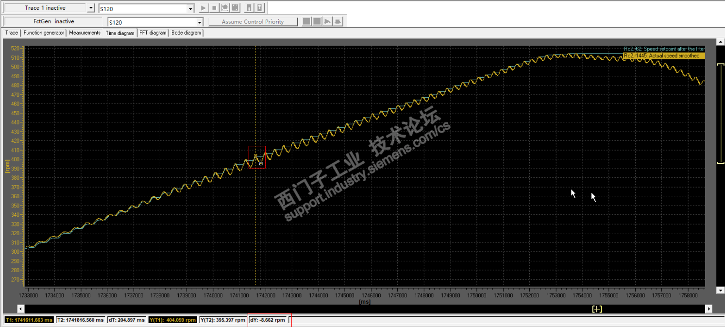 00rpm左右这段时也是同样的情况。目前将轴多次重新优化后效果不好,手动减小速度控制器P值,最低到0.8,这段的波动值变小了一点,最大大概7rpm,效果也不理想。请专家老师们帮忙看看都有哪些原因导致和有哪些好的解决办法呢?