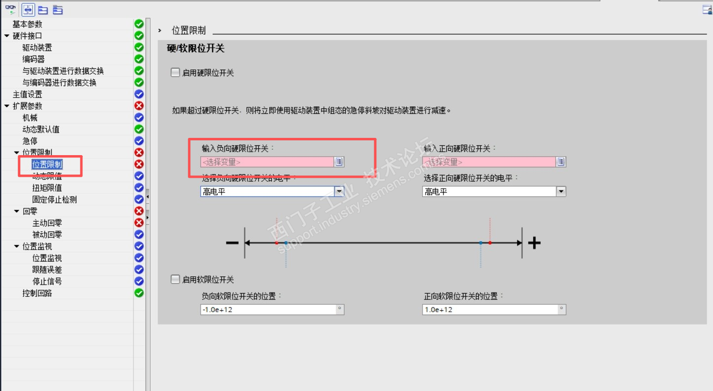 老师,请问一下。在进行V90工艺配置时,我这里为什么一定要设置硬限位呀。我是做旋转运动,不设置硬限位不行吗?我这里必须限制硬限位,否则不报警。请问一下要怎么处理?