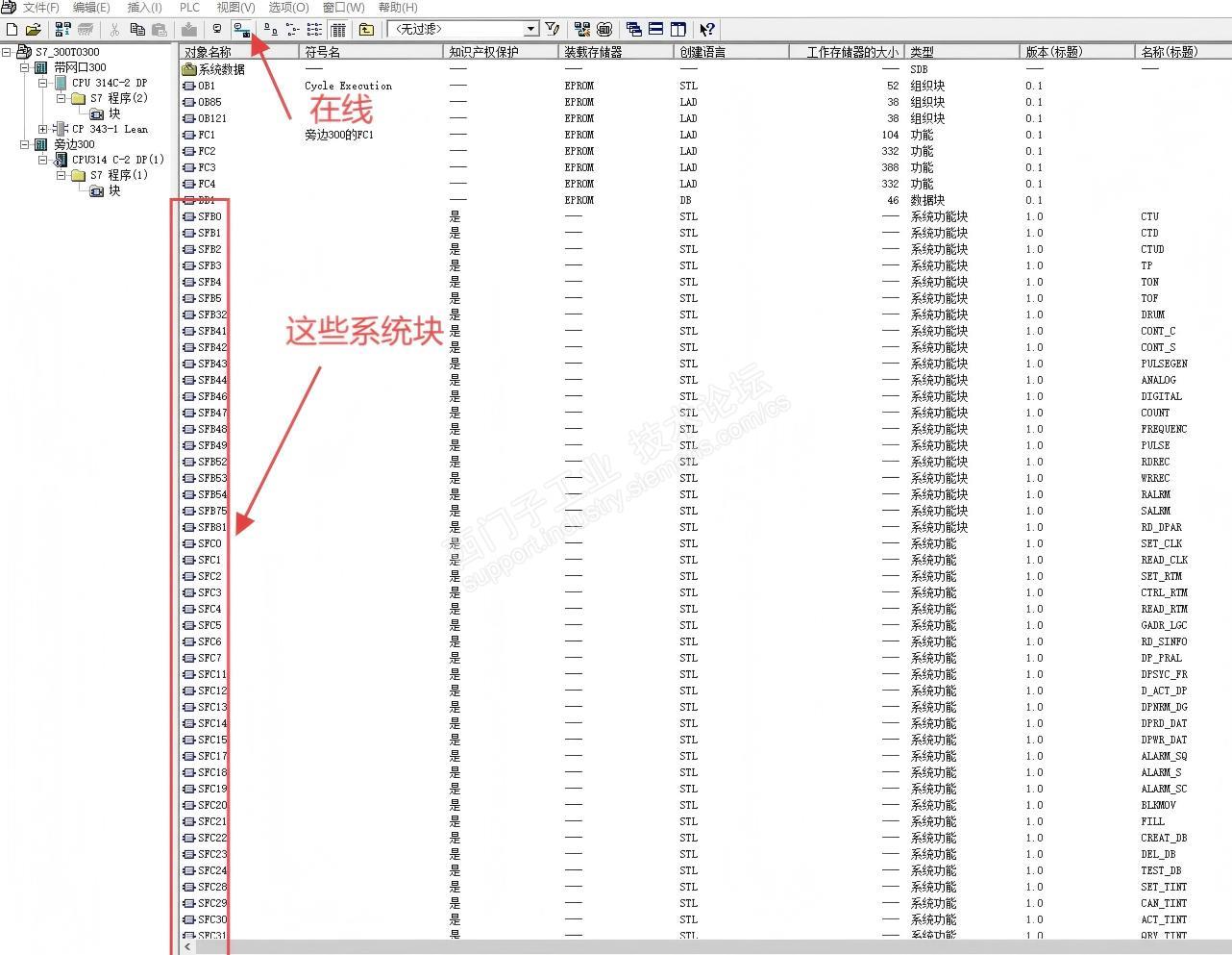 还有一个问题,在线时,出现很多系统功能块,这些是必然存在的吗?删不掉。