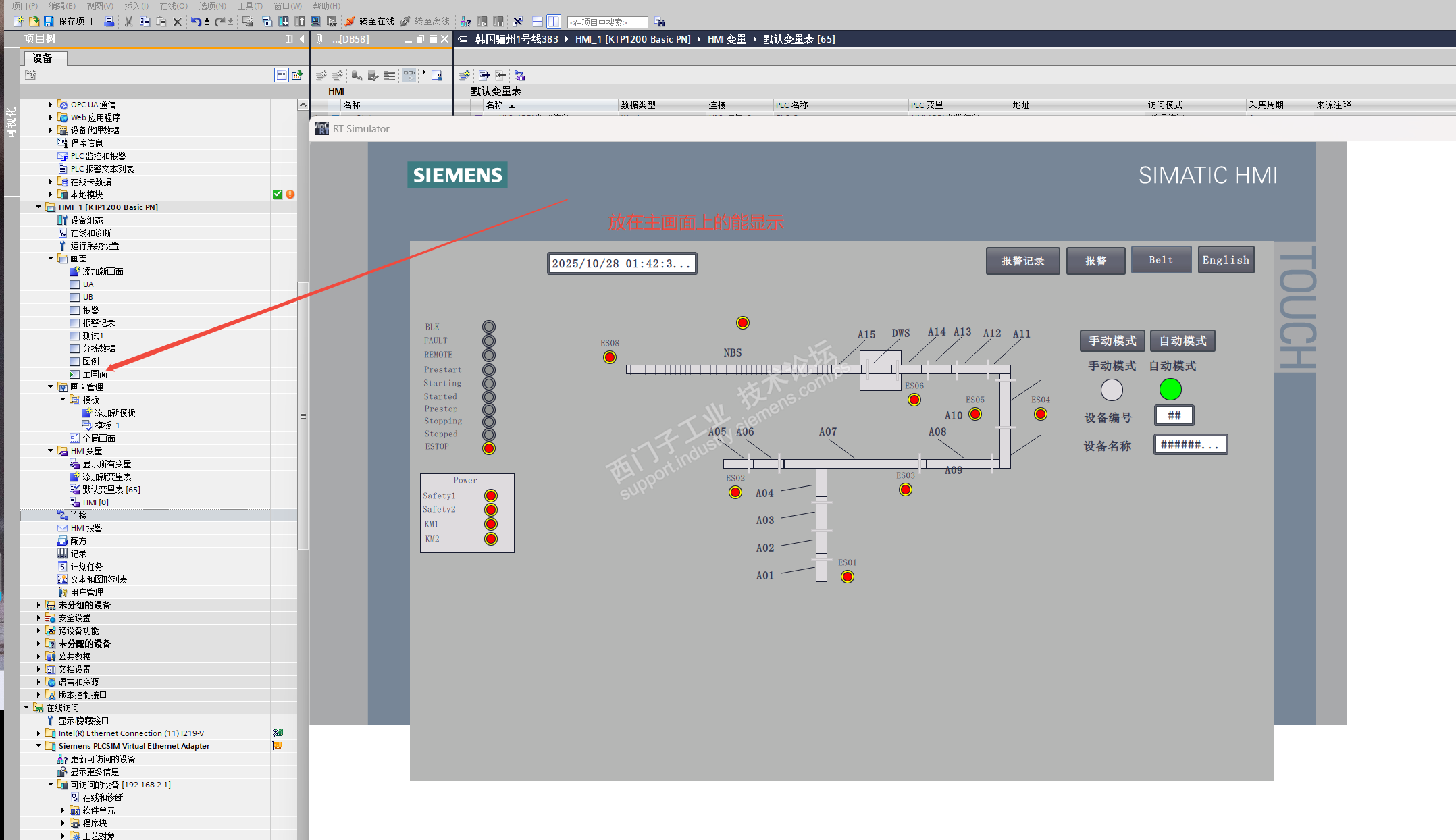 PLCSIM_Advance通讯不上,后来换成PLCSIM就可以模拟测试,看来到最后还是要以实体PLC带触摸屏测试为准