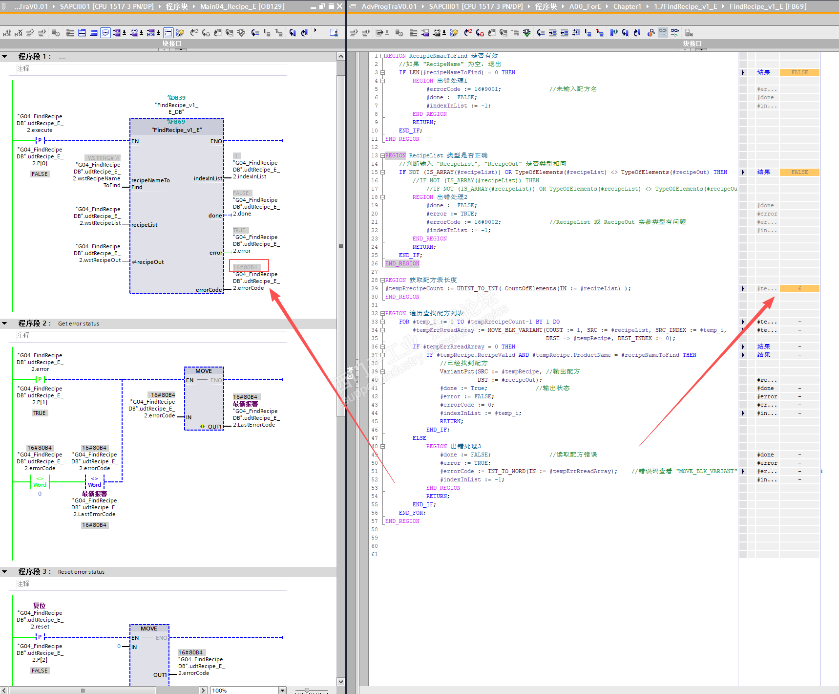 老师,我单独用MBV指令测试过两个recipeList 和recipeOut 都是数组类型,数组元素类型也相同,但一运行就还报16#80B4,实在找不到什么原因了