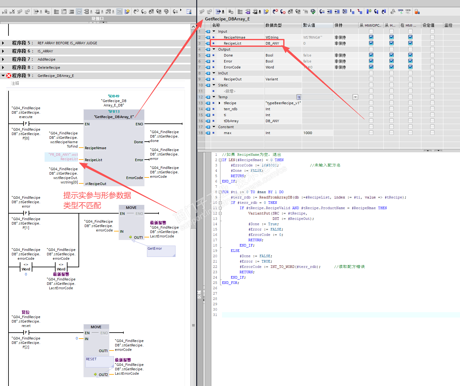 请教老师,Chapter1_1.7GetRecipe_DBArray功能块RecipeList引脚上的数据类型应该怎么定义?