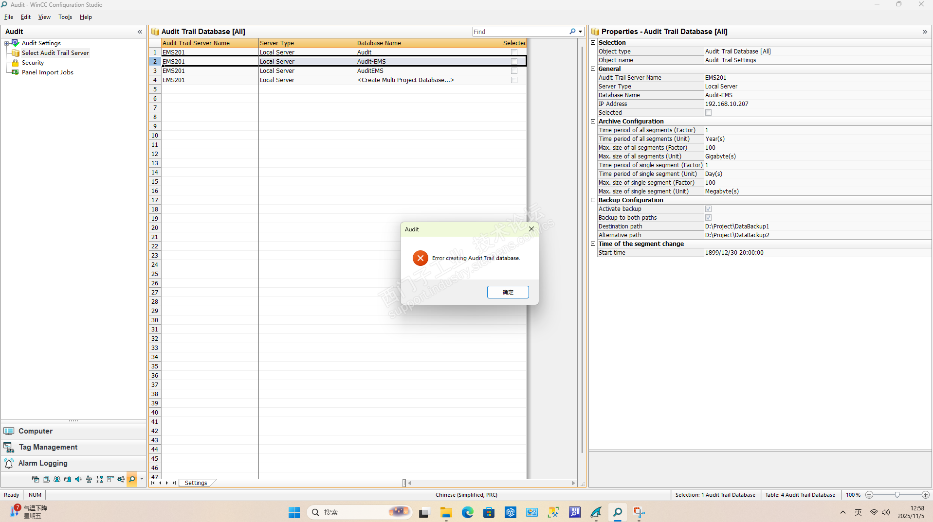Wincc Audit 无法创建数据库,连接数据库报错,请教各位大概是什么原因