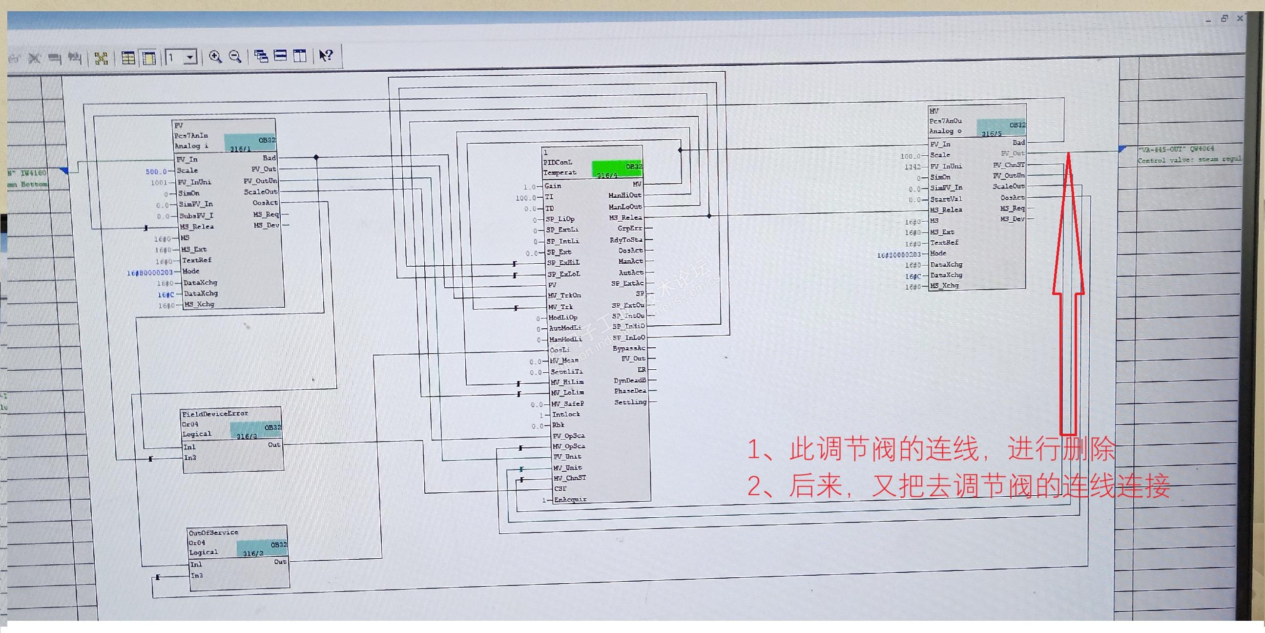 6、于是乎,我就又把新增的PIC4016中,PID块输出去VA445调节阀的连线删除了;