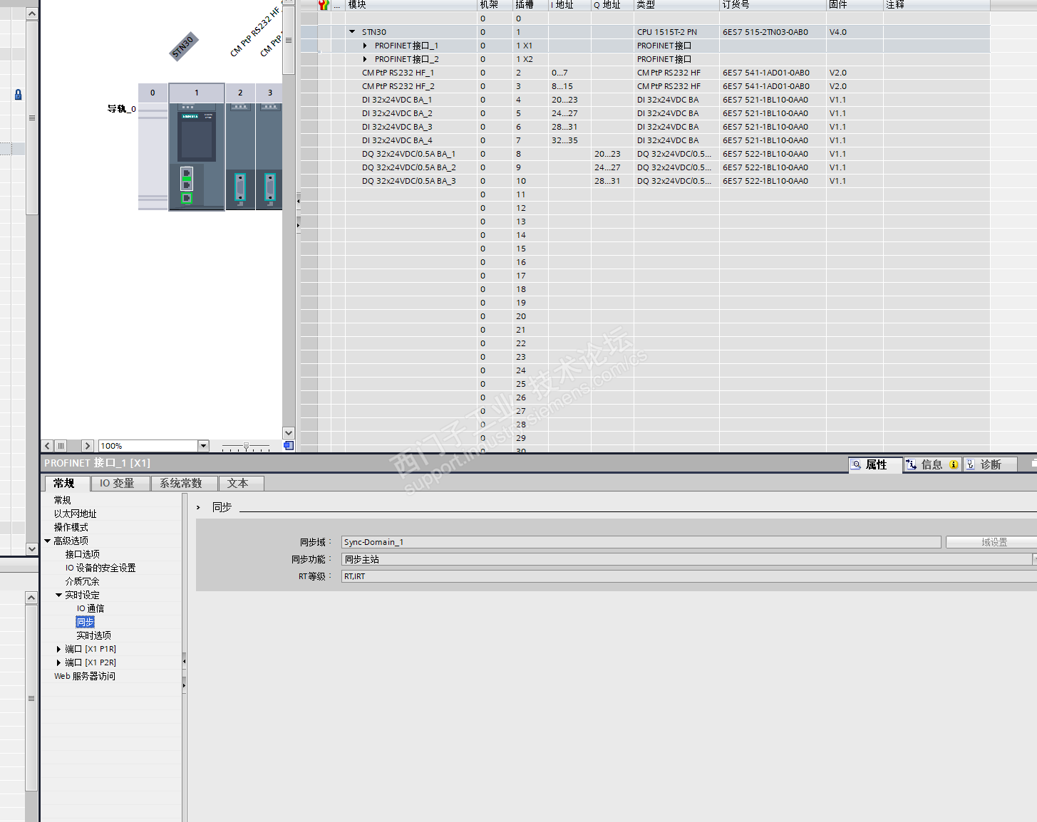 plc组态中开启等时同步功能.