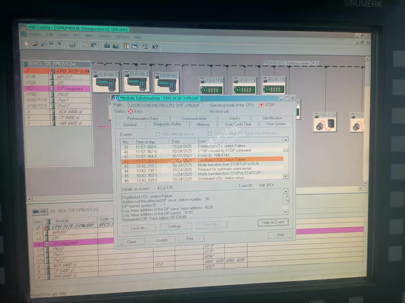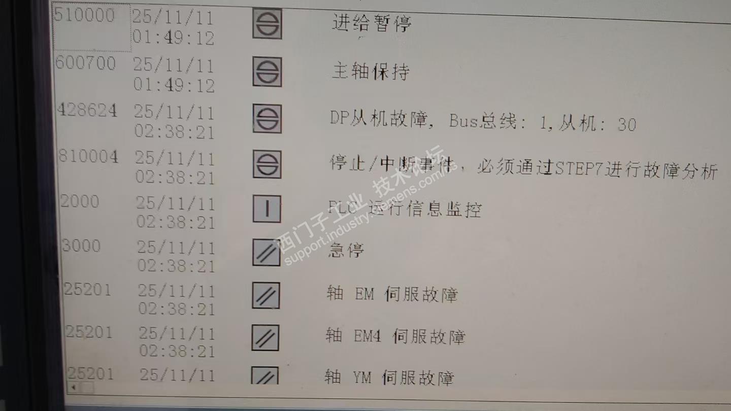 最近一台设备帕马130,频繁发生故障,DP从站故障。站点地址不固定。出现问题的频率有时半个小时,有时一天或者两天。频繁时,一天报警10来次。DP故障时,NCU停止工作。从新做热启动,机器恢复。有遇到的指导下。DP,线插头,怀疑问题的菲尼克站都已替换过。问题依旧