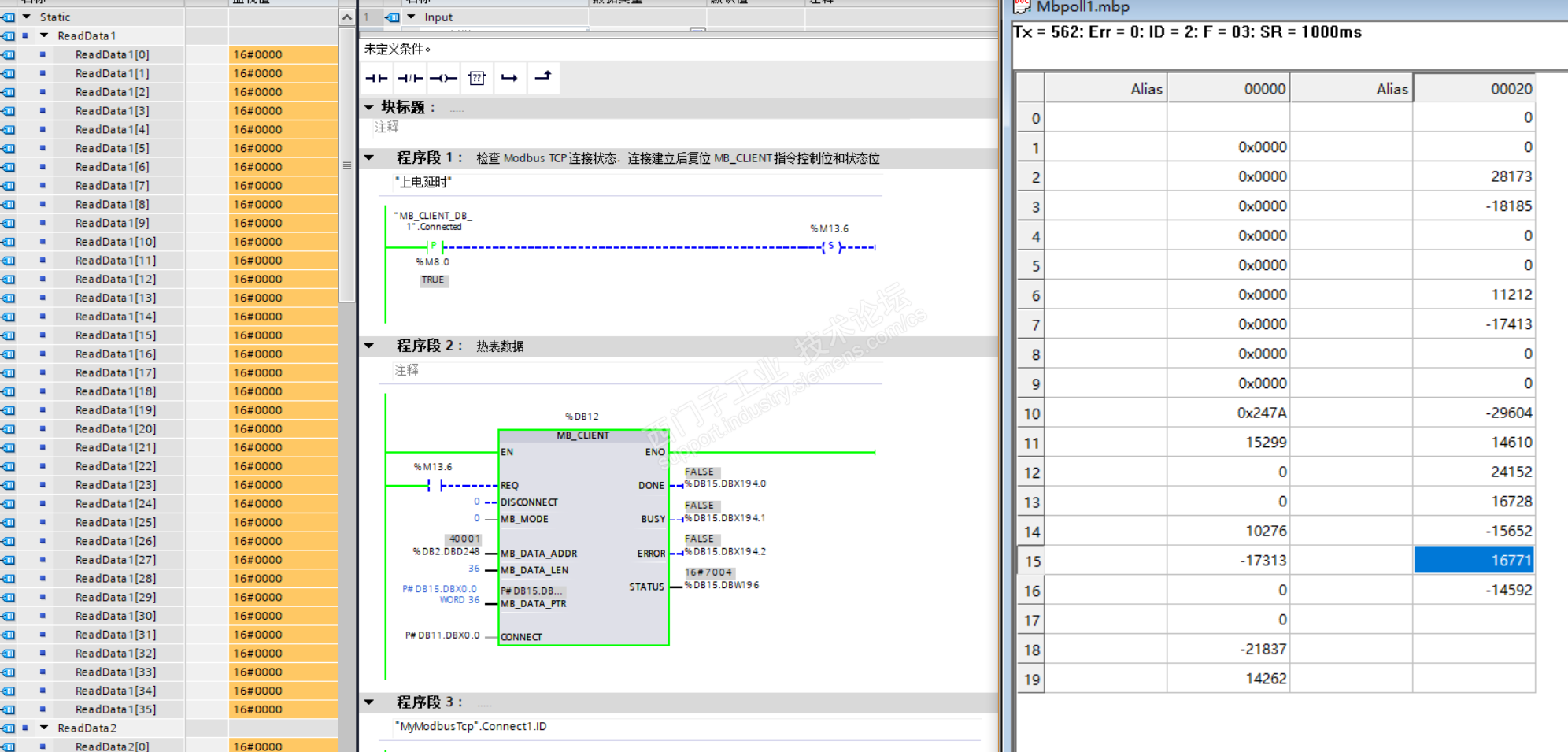 西门子1214C做客户端,做modbusTCP通讯,读取两台从站设备数据(两台从站为RTU,使用一个Modbus TCP网关)。
