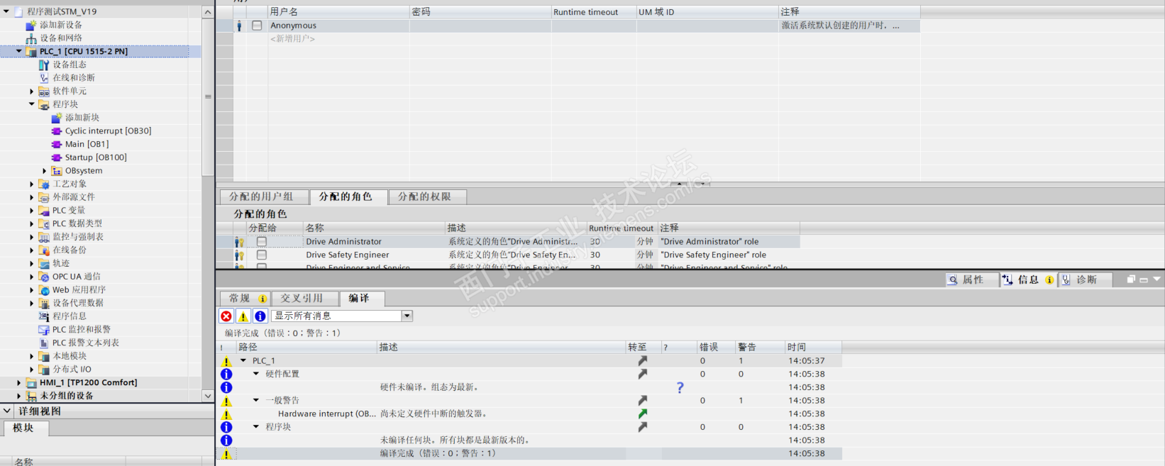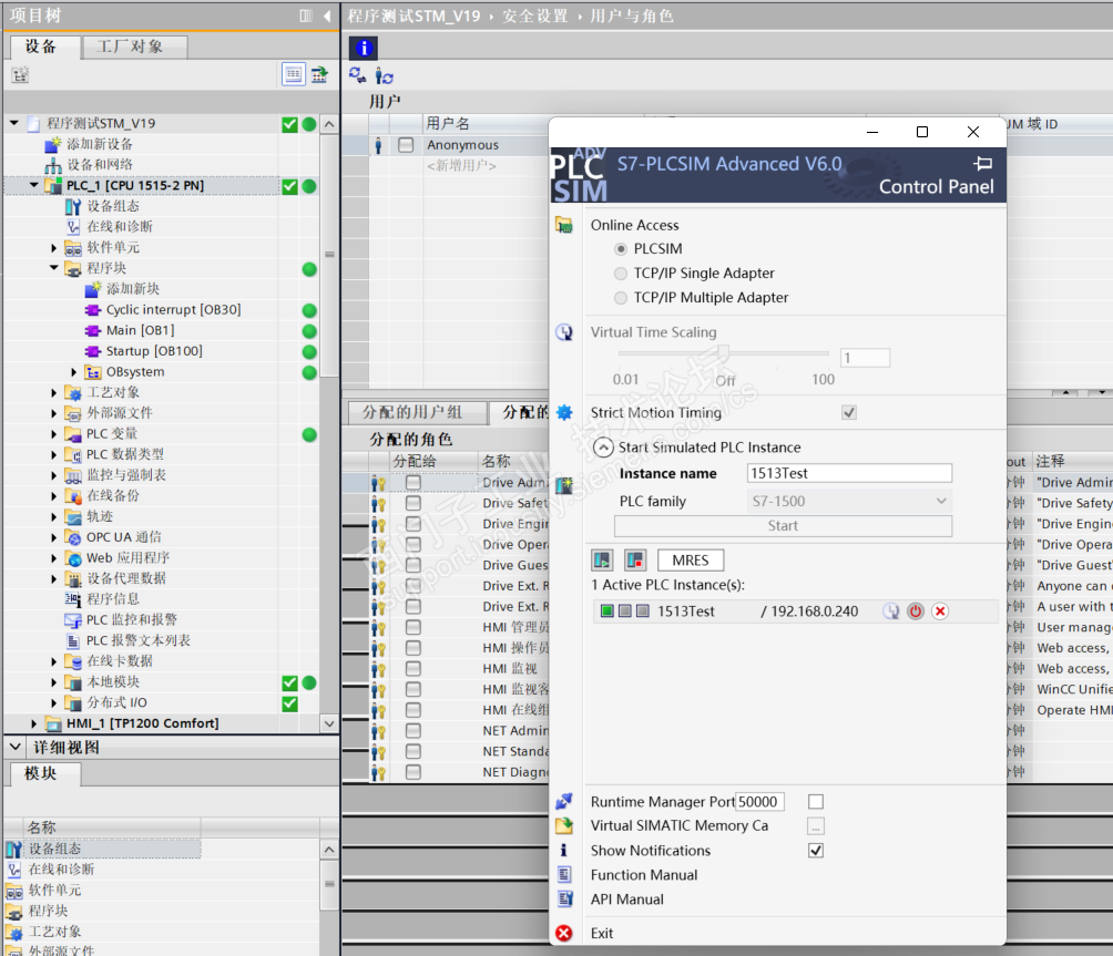 三、程序编译无错误,新建1500Test 仿真PLC,组态程序下载正常可以在线查看程序