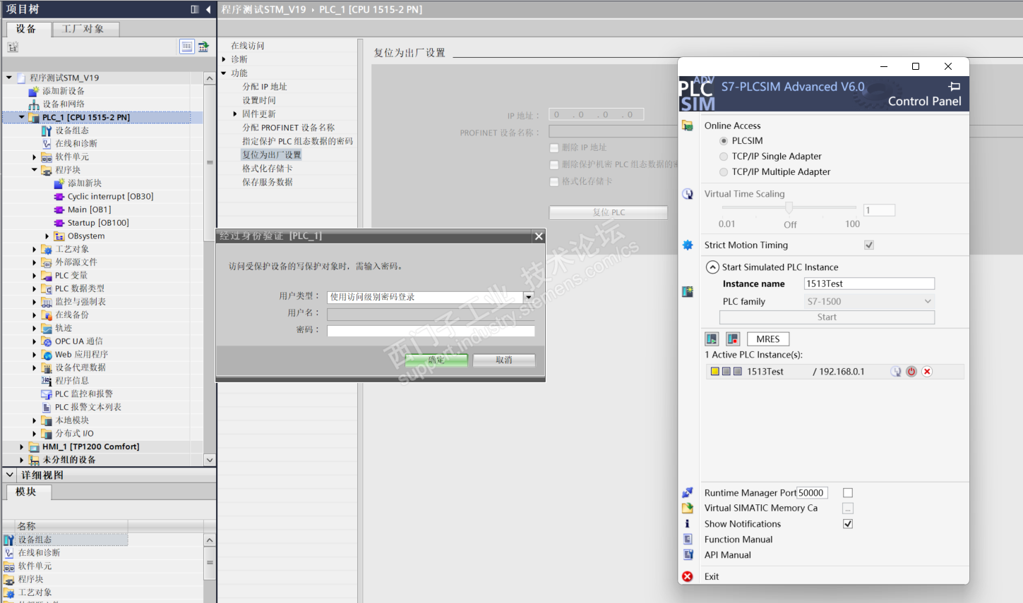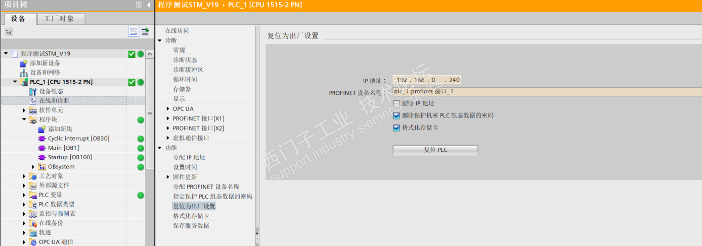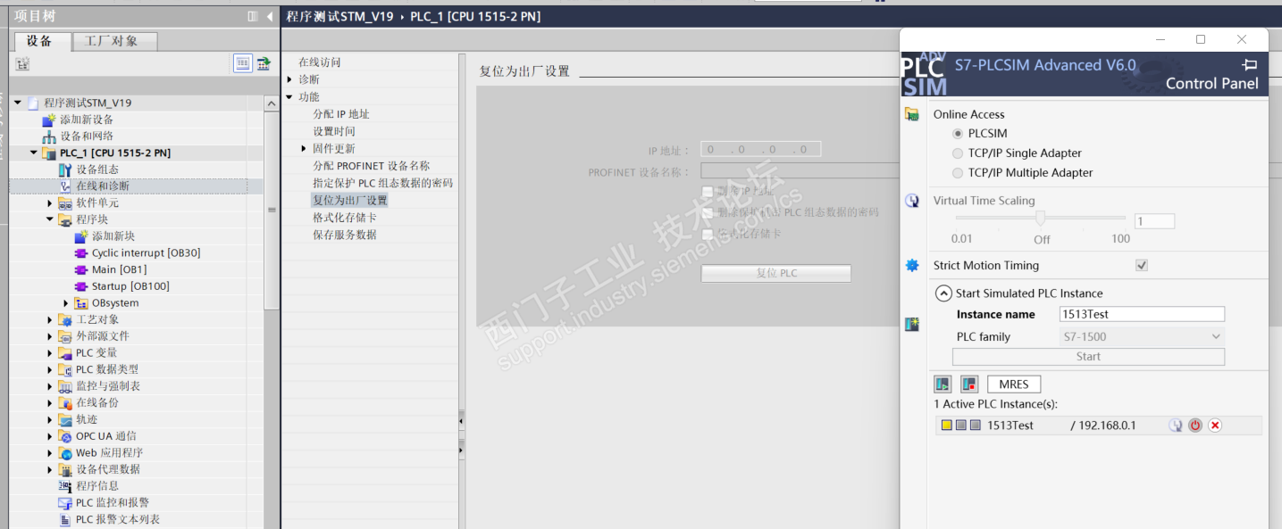 在网上看到有一种解决办法是针对1500 PLC 存储卡复位的办法,然后最近有时间使用仿真软件测试了一下,反而出现更理解不了的问题。测试过程如下: