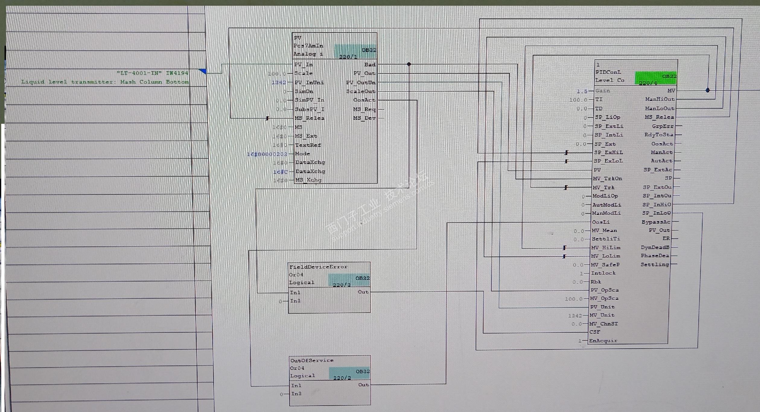 我们有一个PID控制回路,PID控制变频器驱动的离心泵,这个PID控制回路的模拟量输入是塔釜液位LT-4001这个液位变送器;这个PID控制回路是用泵的转速来维持液位恒定。现在,这个单回路控制正常,没有问题。