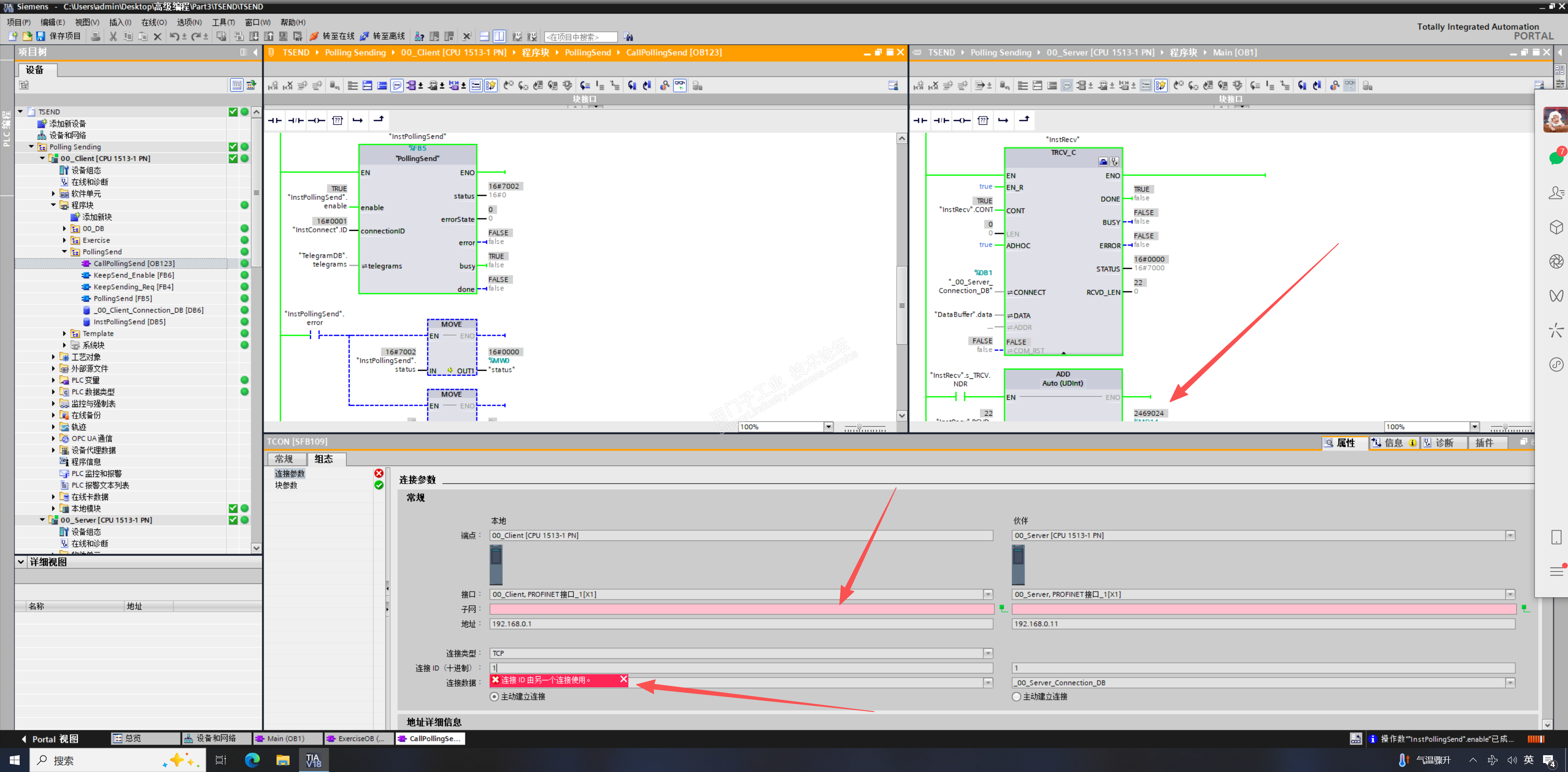 从库里拖拽的DEMO,直接下载后仿真,在TCON的组态里子网和连接ID的位置显示红色,连接ID提示连接ID由另一个连接使用。