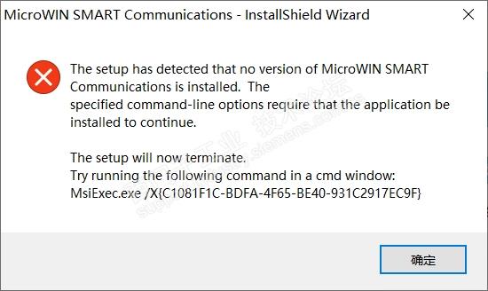 安装STEP_7_MicroWIN_SMART_V2.8时,疏忽了没有关闭杀毒软件,中间有很多报错了。卸载后重装,出现下面的提示。