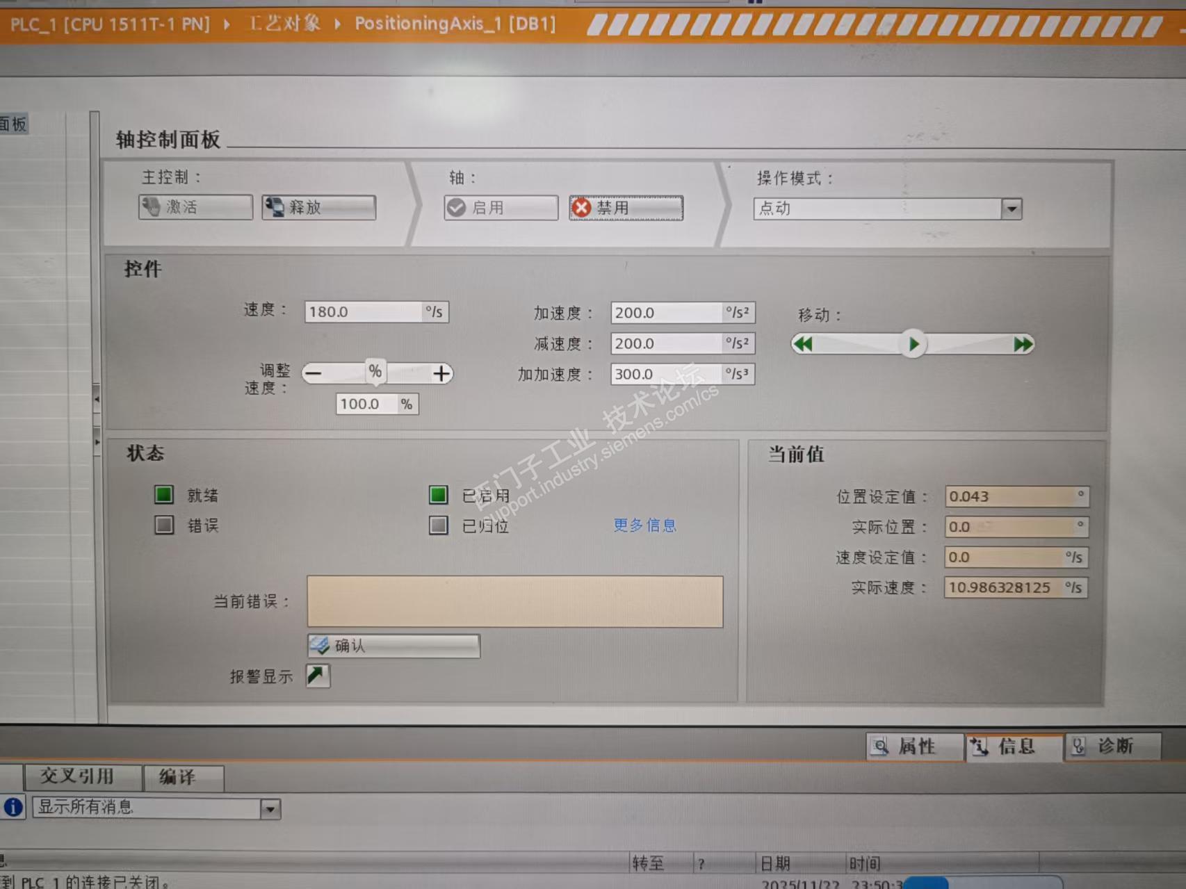 在博途控制V90,在按下启用后,电机已使能,但电机轴不转,这是怎么回事?