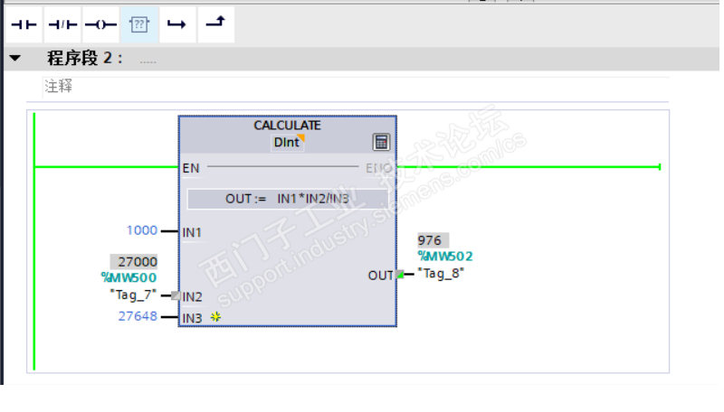数据类型为INT型,运算范围超限了,你改为DINT就可以了。