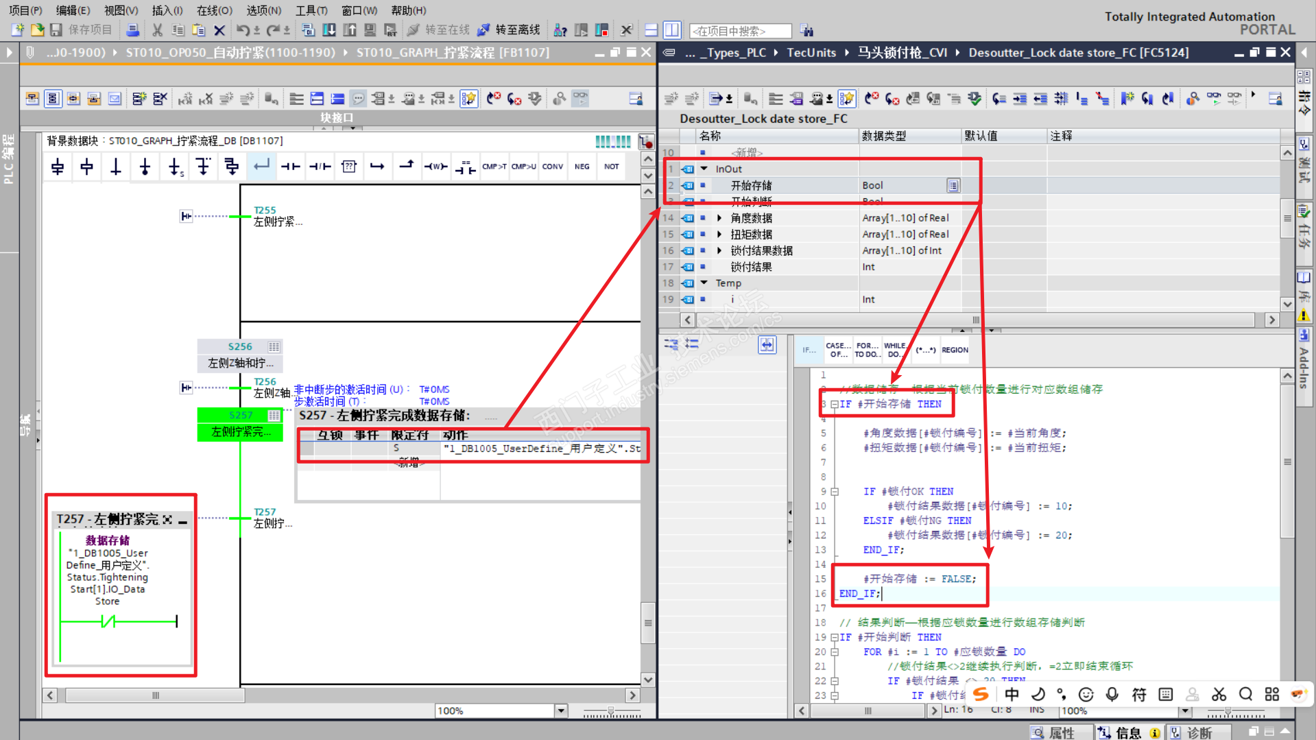 如下图示,步和转换条件以及触发InOut引脚的“开始存储”里面的变量都是同一个变量。