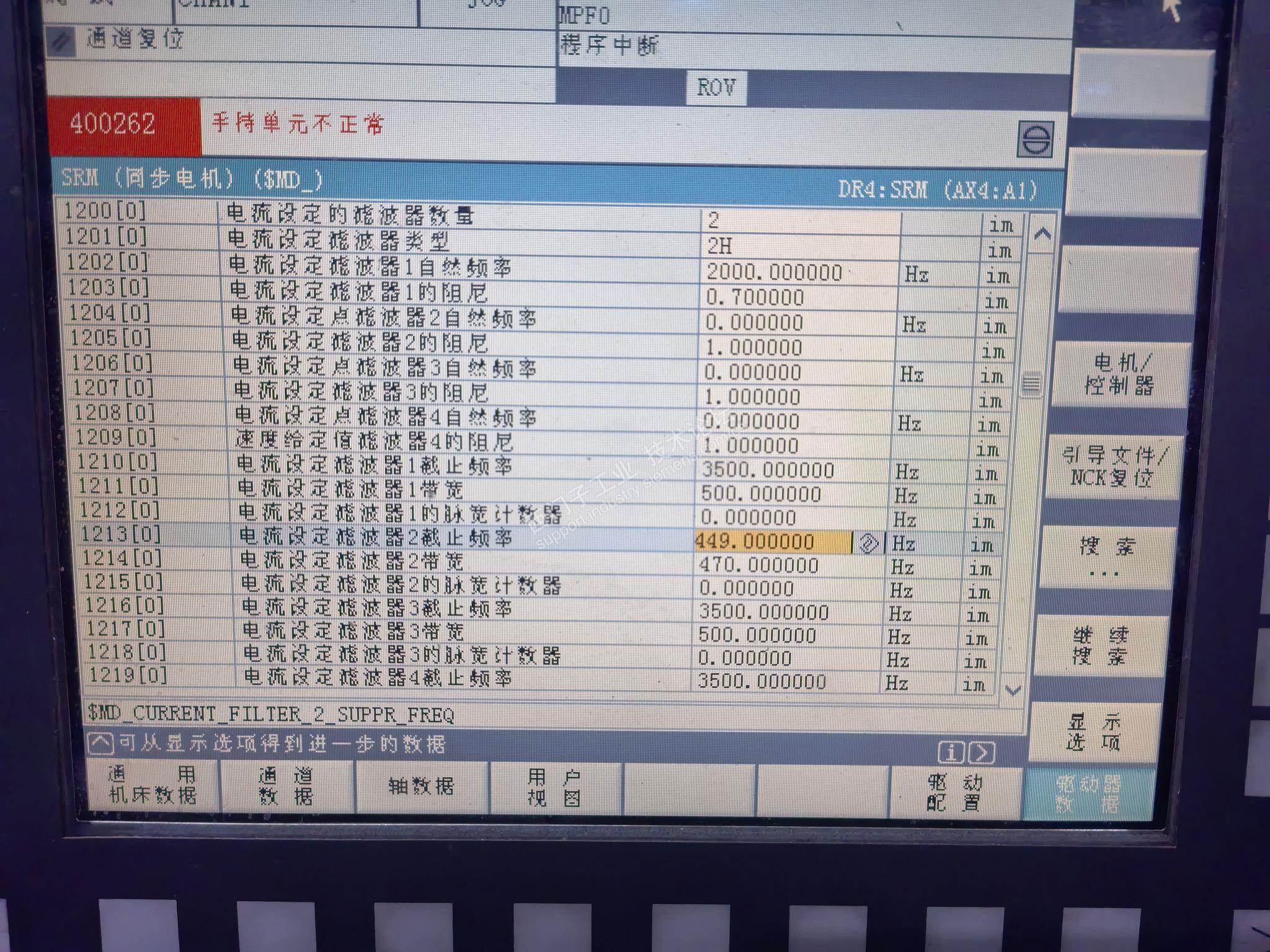 请教大家:如下图一,速度环测量结果;针对超调部分做处理,设置了滤波器2(MD1200=2、MD1201=2、MD1213=449、MD1214=470),啸叫变的更明显;是参数设的有问题么,如何设置?
